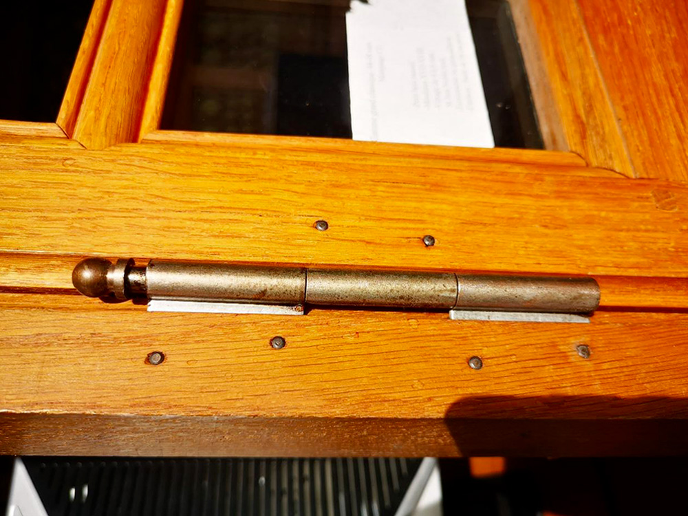 - Certaines menuiseries sont équipées de fiches, un graissage de l’axe peut parfois être nécessaire, utiliser une cale et marteau pour faire sortir la tête de l’axe environ 10 mm, utiliser l’huile fournis dans le KIT entretien pour graisser les fiches et autres quincailleries.